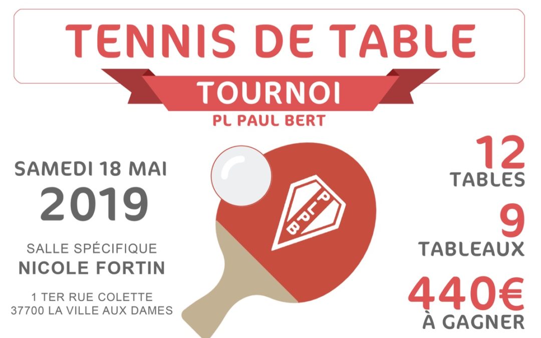 Le Samedi 18 Mai 2019 dans la salle spécifique Nicole Fortin de la Ville aux Dames, le Club du PL Paul Bert organisait son tournoi de tennis de table. Douze tables, neuf tableaux et une dotation de 440€.