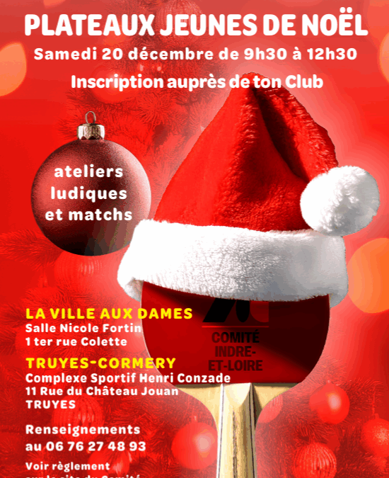 Deux plateaux jeunes de Noël seront organisés le 20 décembre, de 9h30 à 12h30, sur deux sites : La Ville-aux-Dames et Truyes.