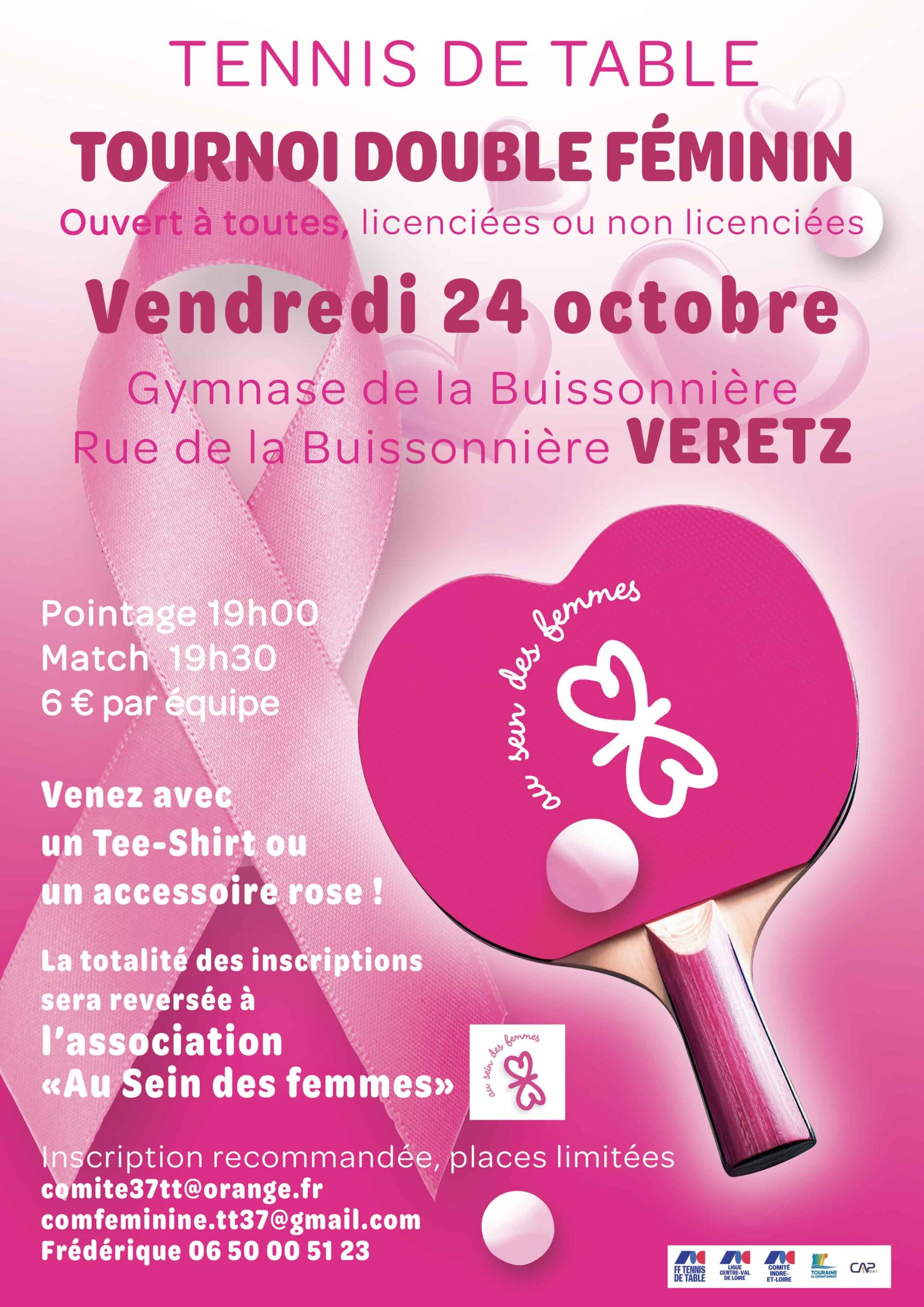 un tournoi double féminin à l’occasion d’octobre rose. Plus nombreuses que la saison passée, 24 équipes engagées soit 48 joueuses de différents clubs mais également des non licenciées venues soutenir cette noble cause. Les bénéfices ont été reversés à l’ association « Au sein des femmes de Touraine », présente pour cette occasion.